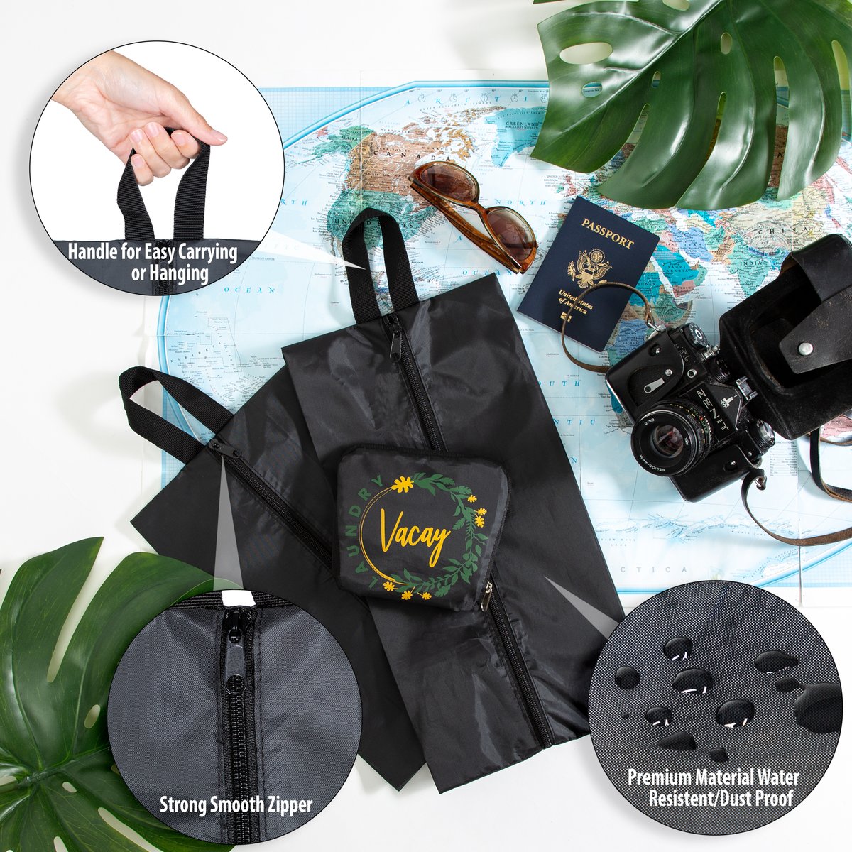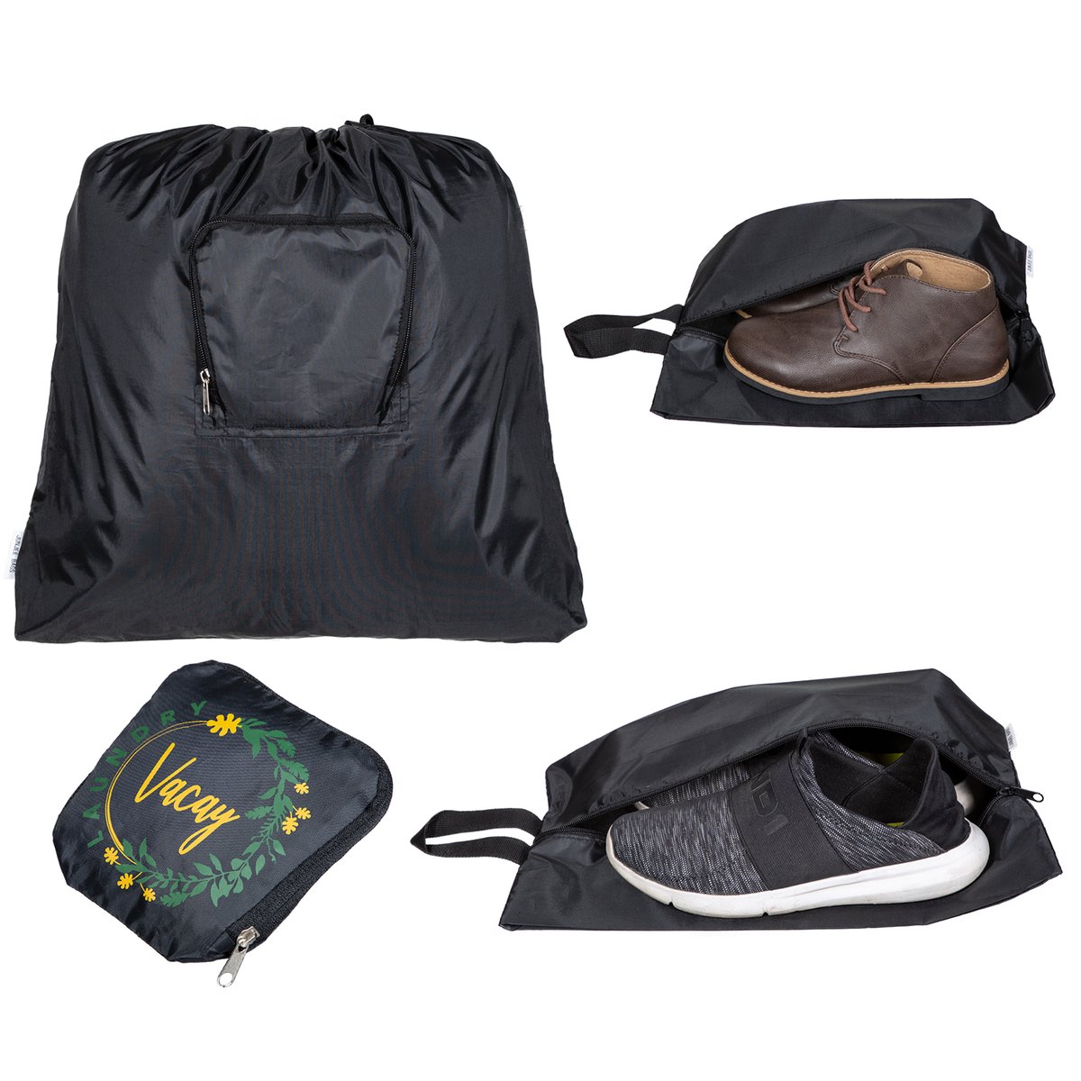 Travel Laundry Bag with Bonus Set of Two Shoe Bags are a perfect traveling accessory to organize your packing while traveling. The Laundry Bag is compact and expandable. When folded it is 6.3 inch x 6.3 inch with a drawstring closure. The perfect solution to keeping your dirty clothes separate from your clean clothes while traveling. This light weight Laundry Bag is great alternative from storing it in a plastic bag.